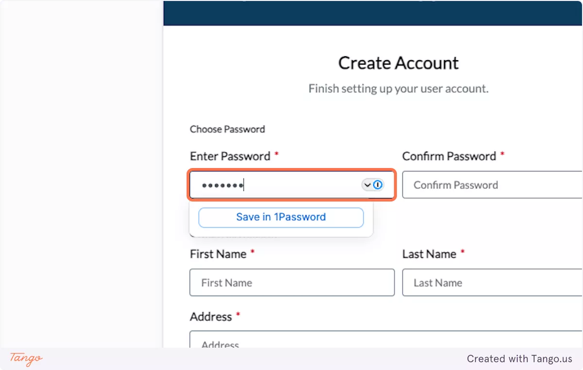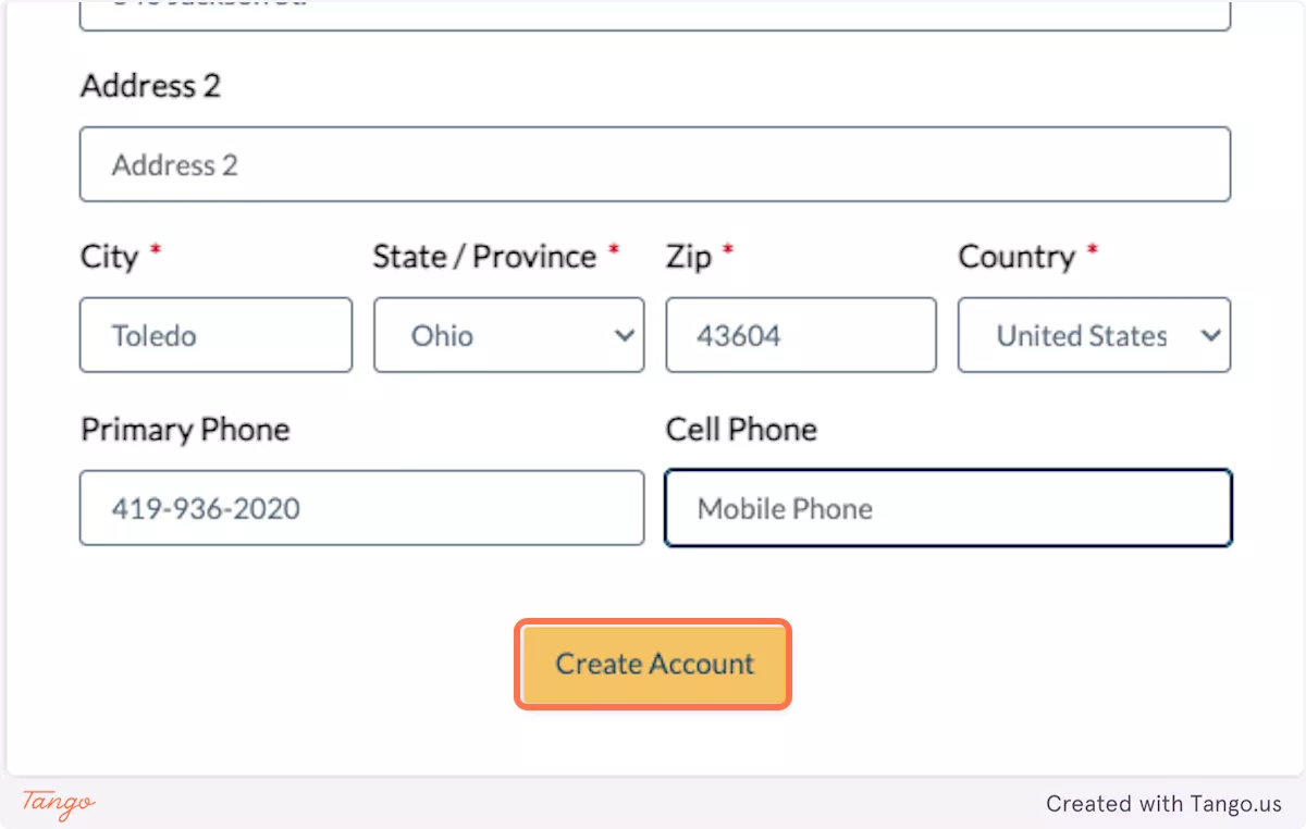 Complete the required account information.