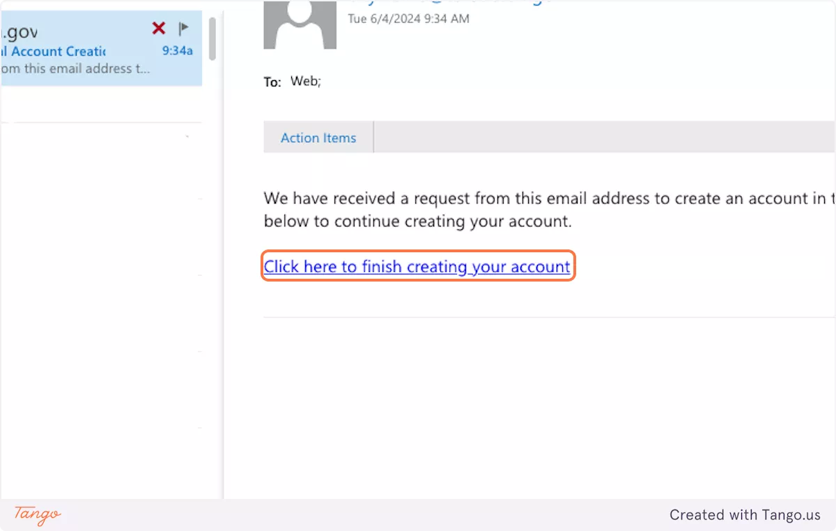 Click on "Click here to finish creating your account"