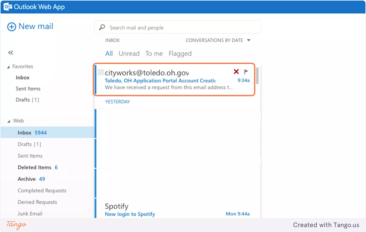 Open the email from cityworks@toledo.oh.gov
